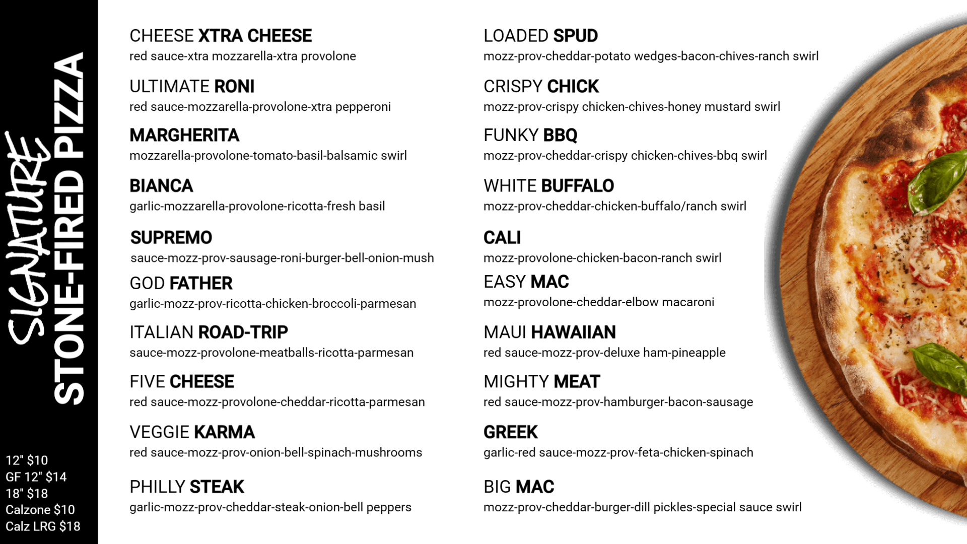 Our Customers are Lovin Our NEW AUTHENTIC ARTISAN RUSTIC New York Hearth Style STONE BAKED 18” PIZZAS